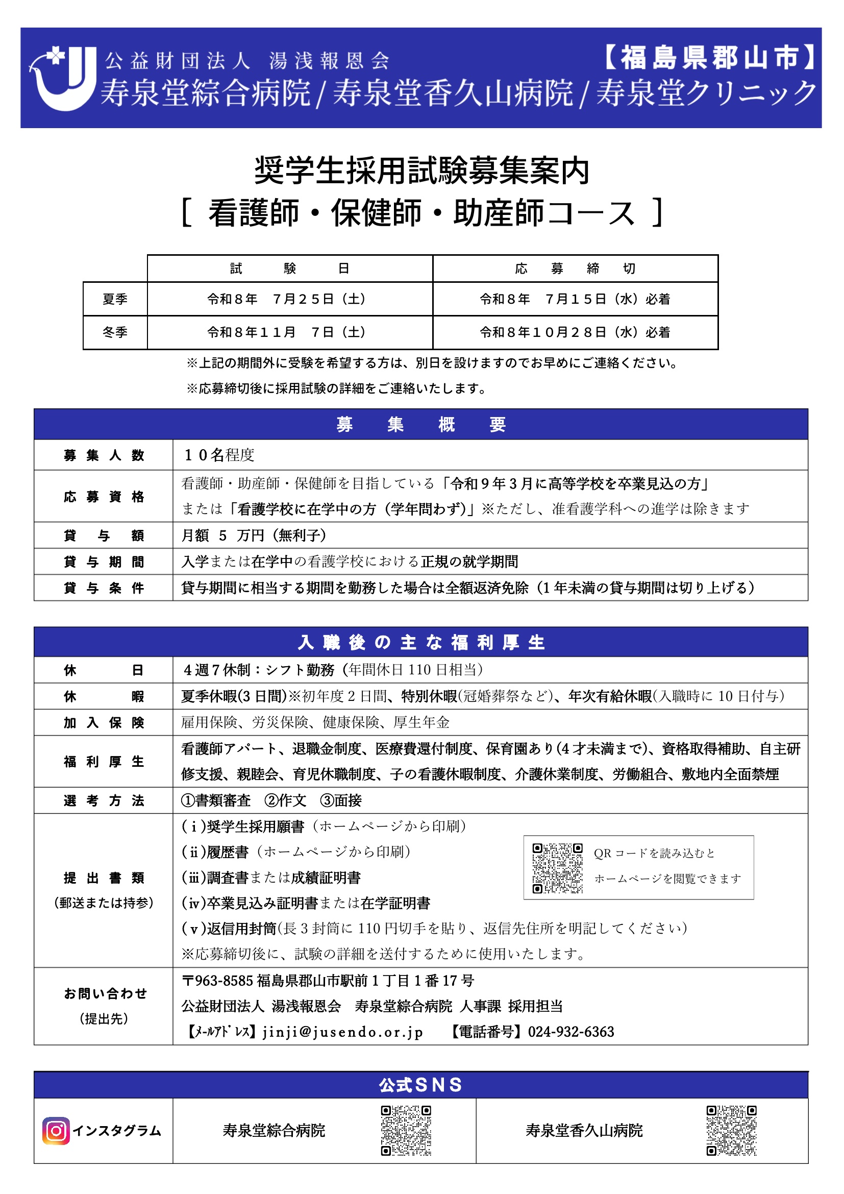 令和9年3月に高等学校卒業見込みの方 ※看護学校在学中の方はお問い合わせください |