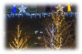 このイルミネーションは、郡山駅前で開催中の第10回ビッグツリーページェントにあわせて、平成21年の旧病院の頃から実施しているものです。寒さが厳しくなる季節ではありますが、患者さんとそのご家族にこころ安らぐひとときを味わっていただくとともに、地域住民の皆さまが良い年を迎えられるようにとの願いを込めて設置いたしました。