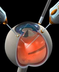 本装置は眼科の白内障手術をはじめ、網膜剥離、重症糖尿病網膜症、硝子体出血、網膜静脈閉塞症、加齢性黄斑変性、黄斑円孔、黄斑前膜の手術に使用する最新型の医療機器となっております。